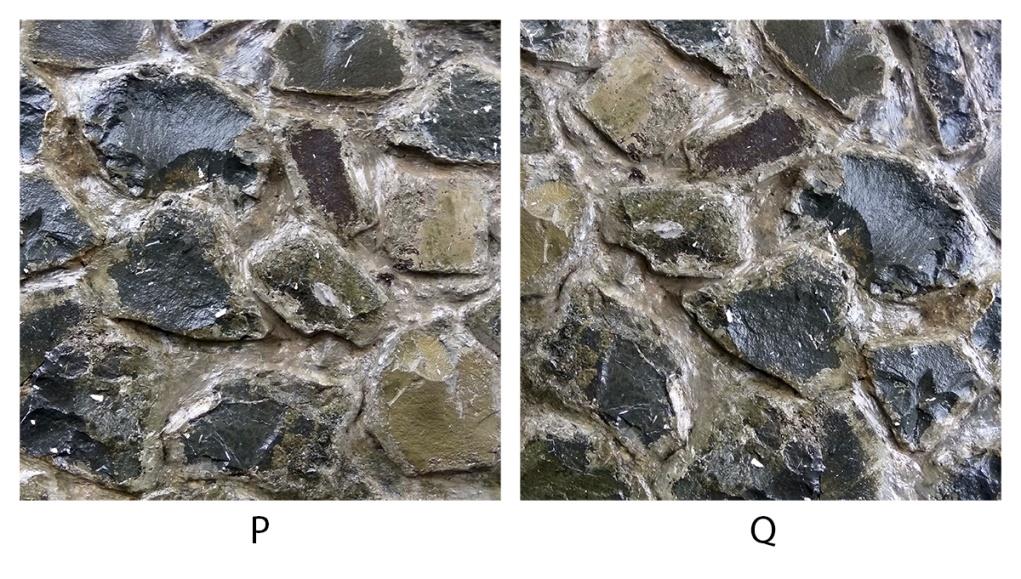 Image P shows a portion of a larger photograph. Some operations have been done on that photograph using an image manipulation software. Image Q shows a portion of the resulting photograph. Identify the option(s) that specifies/specify the correct operations.