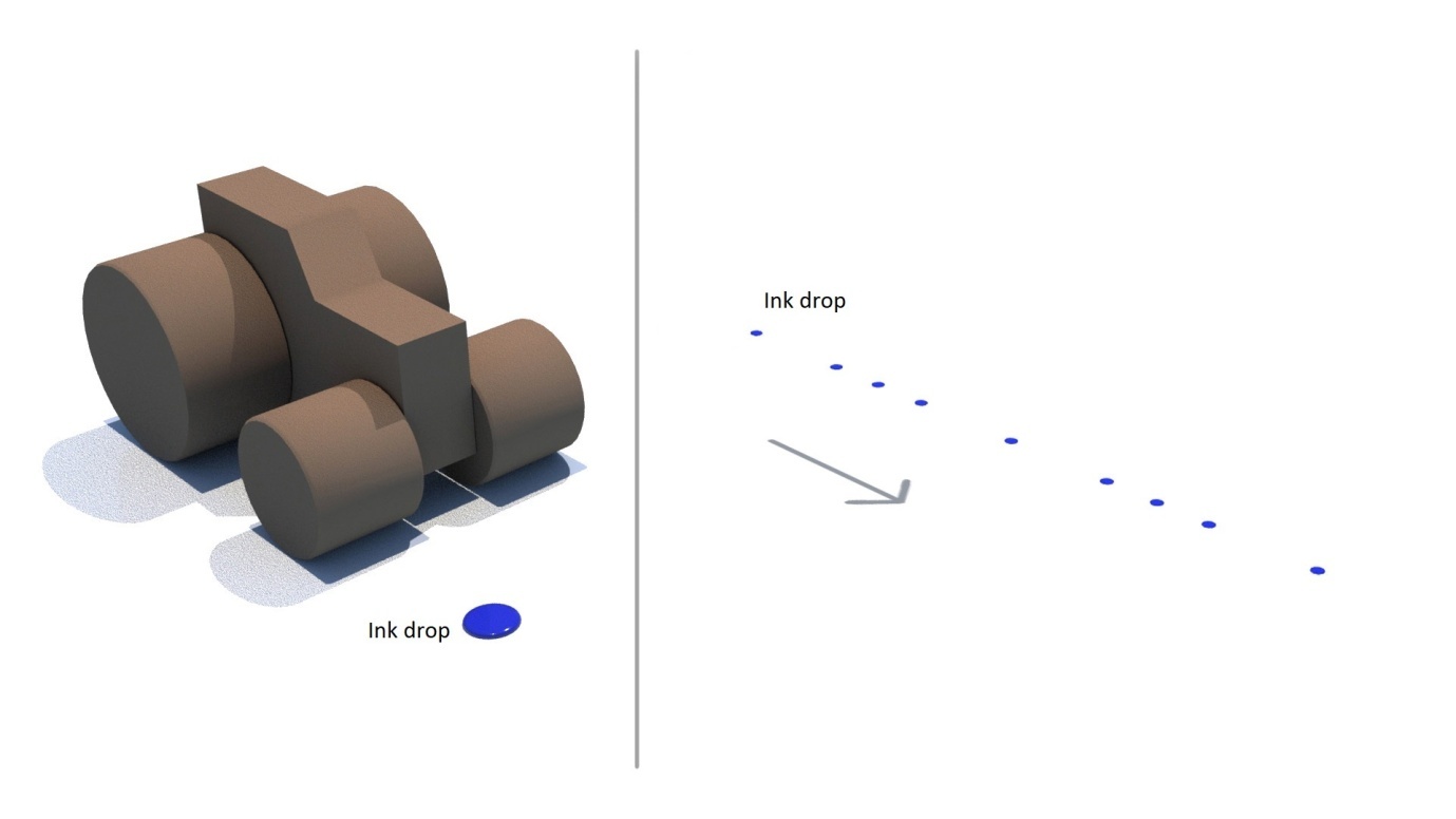 While Lilo was playing with a toy tractor, she rolled it over an ink drop. The image on the right shows the ink drop and the marks on the floor left by tractor's wheels. The diameter of the back wheel of the tractor is 1.5 times that of its front wheel. What is the number of revolutions made by the front wheel between the ink drop and the last mark?