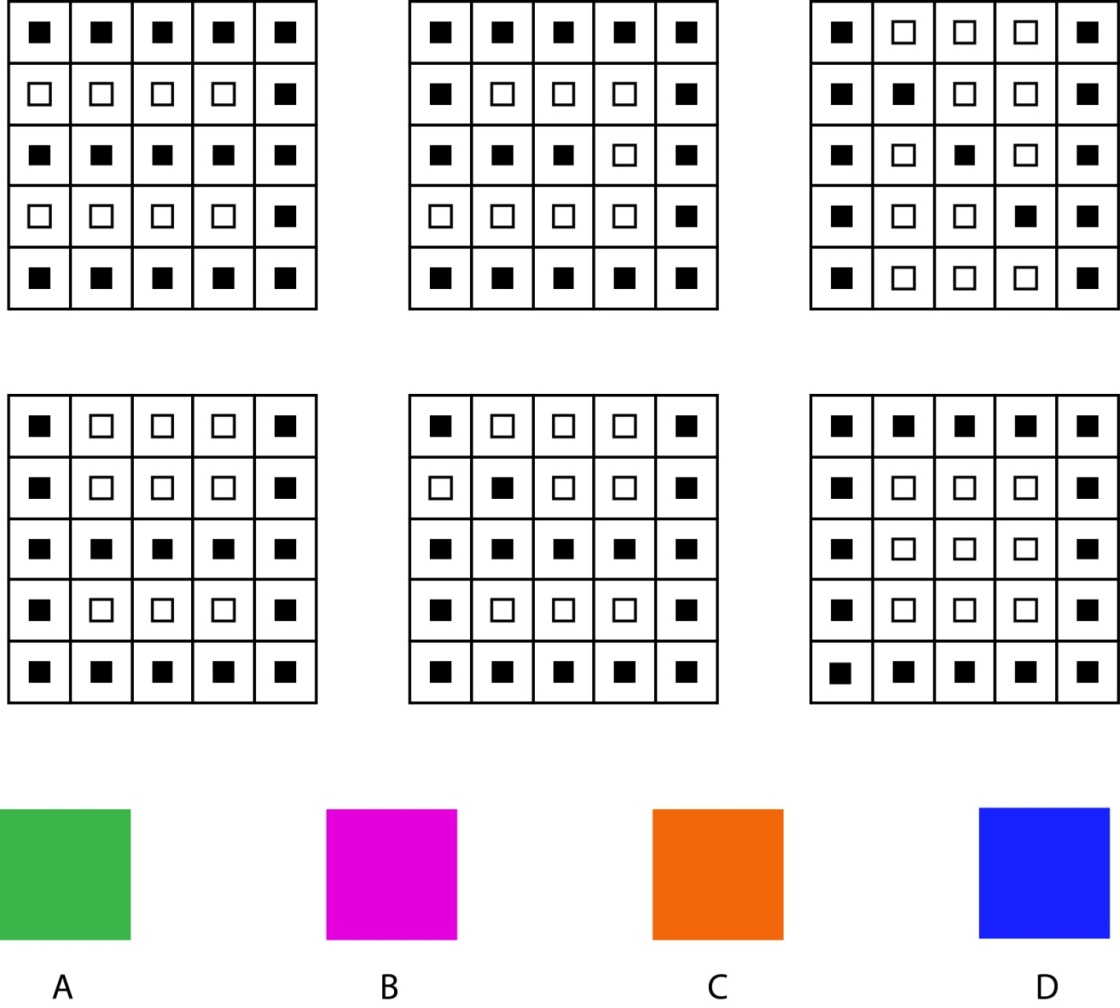 A set of six patterns is shown in the figure. Choose the option which corresponds to the set.