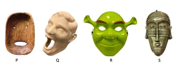 P, Q, R and S are masks made of wood, rubber, plastic and metal, respectively. Which of the following statements is/are TRUE?