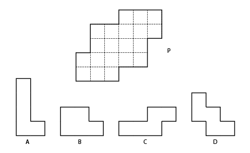 Figure P can be divided into four identical pieces. Assuming that the pieces can be rotated and flipped, which of the options will fit?