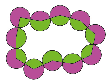 Eleven identical circles are linked together by line segments that connect the centres of adjoining circles as shown in the figure below. Which of the statements is TRUE?