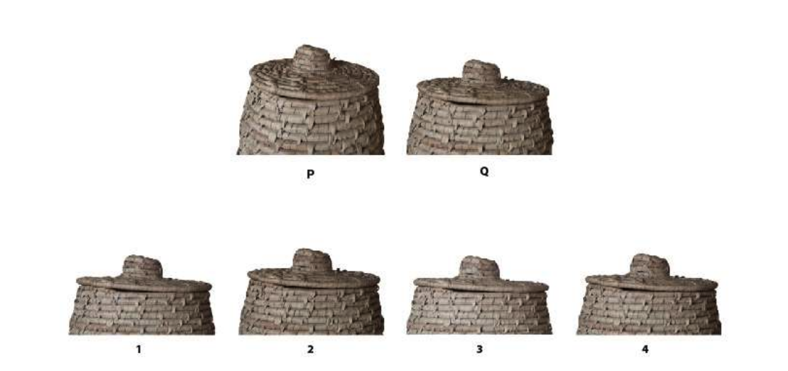 Q is shot with higher focal length than P. Arrange 1, 2, 3, 4 in the ascending order of the focal length they are shot with.