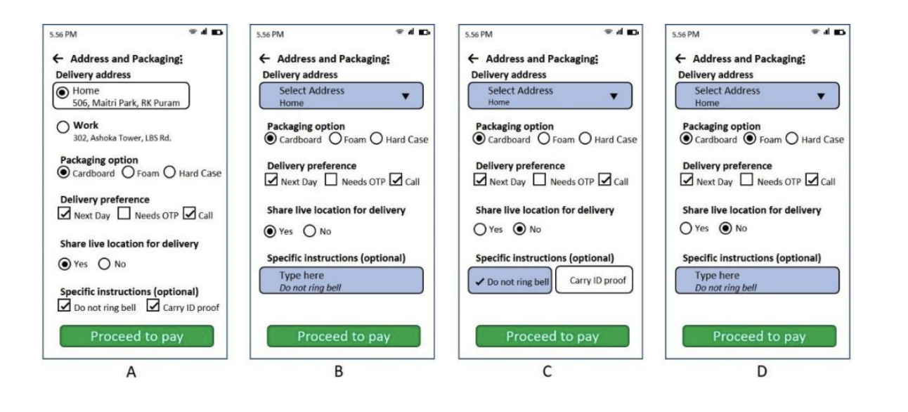 Various designs of an application screen are shown below. Identify the screen that INCORRECTLY depicts functions of standard interface components.