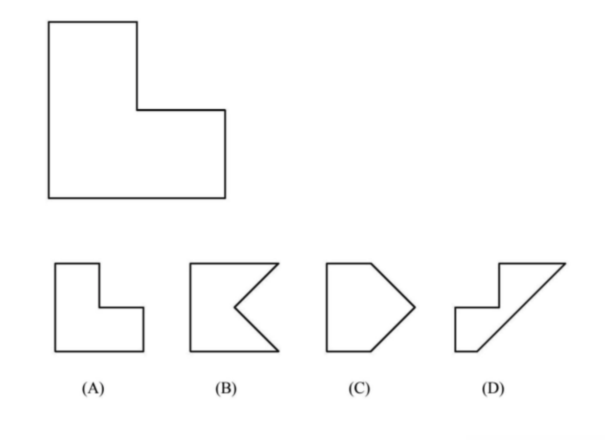 Q17.The completed shape can be made using which 4 tiles, without turning them in any direction? Select the tiles that have been used to create the shape.