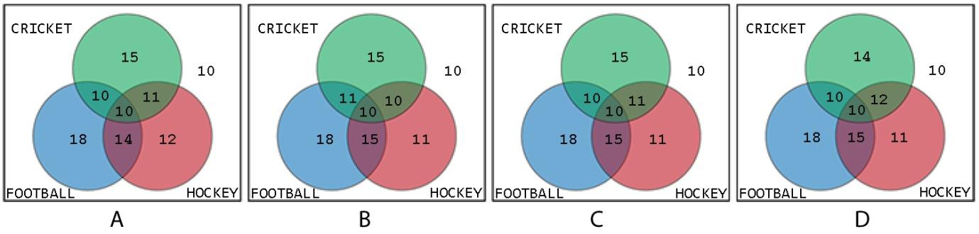 In a school of 600 students, 10% played football, hockey and cricket while 60 were engaged in other sports. 18% of the students played football while 90 played cricket exclusively. 60 students played both football and cricket. 66 students played hockey exclusively and another 11% played both hockey and cricket. Which option represents the school?