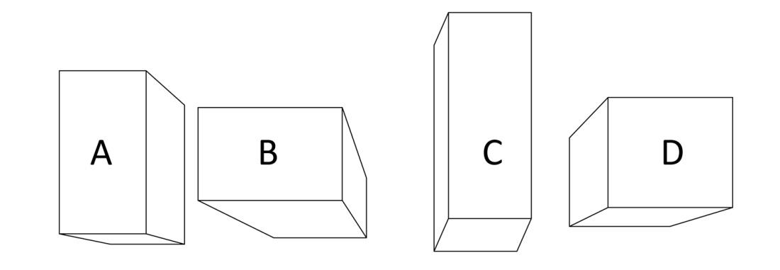 Shown below is a one point perspective drawing where all the blocks except one share the same converging point. Identify the block.
