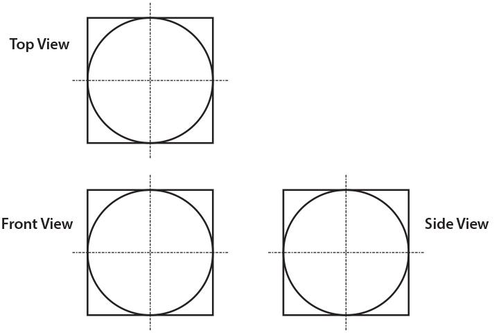 The figure below shows the top view, the front view, and the side view of a three-dimensional solid object. What is the minimum number of surfaces that a solid with these views, can have? Assume that there are no hidden lines.