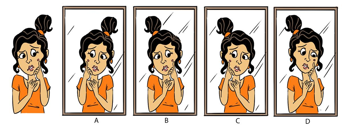 Seema on the left, is looking at a mirror. Which option shows her reflection correctly?