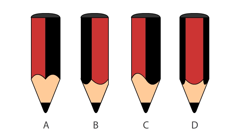 A pencil with pentagonal cross-section was sharpened using a pencil sharpener. Which of the options correctly represent(s) side view of the pencil?