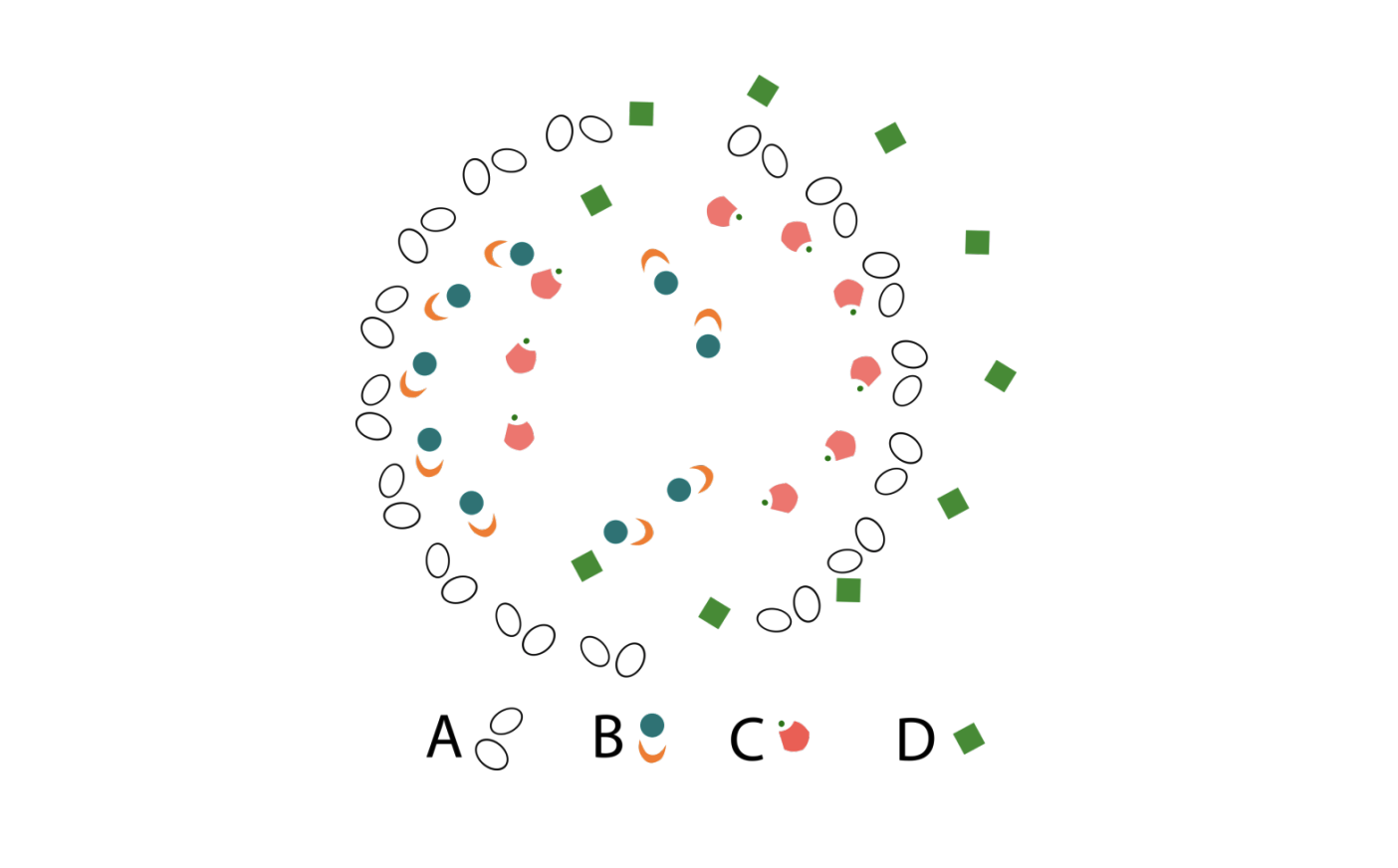In the image shown, objects have been duplicated and rotated. Which object(s) is/are NOT arranged around a perfect circle?