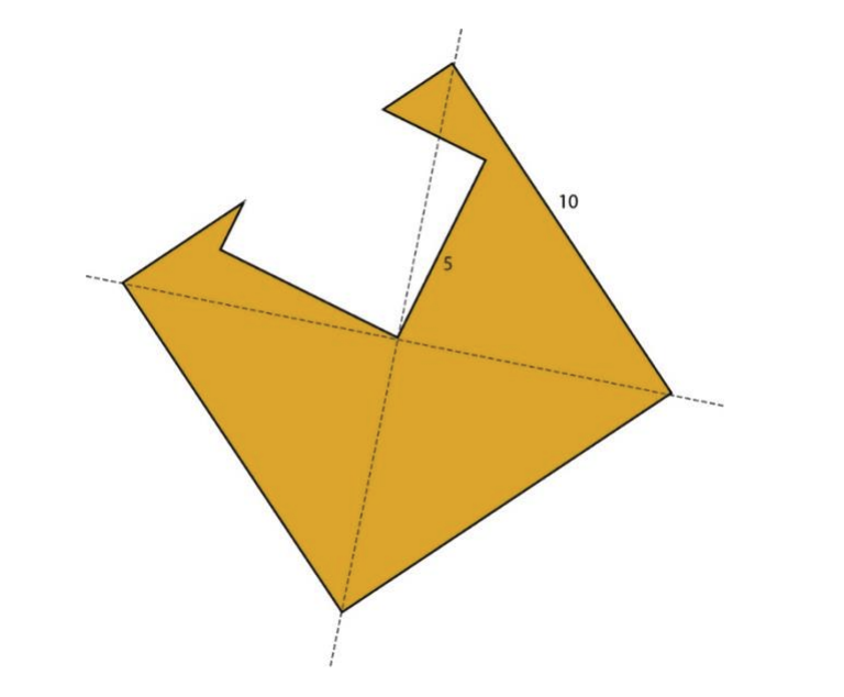 A square of side 10 units, shaded in yellow, is cut using a square of side 5 units as shown in the figure. What is the perimeter of the resulting shape, shaded in yellow?