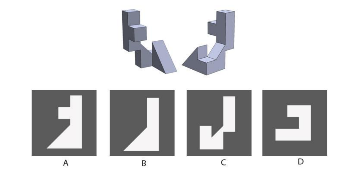 Shown below are 2 views of the same solid. Through which of the cutouts shown in the options, will the solid pass?