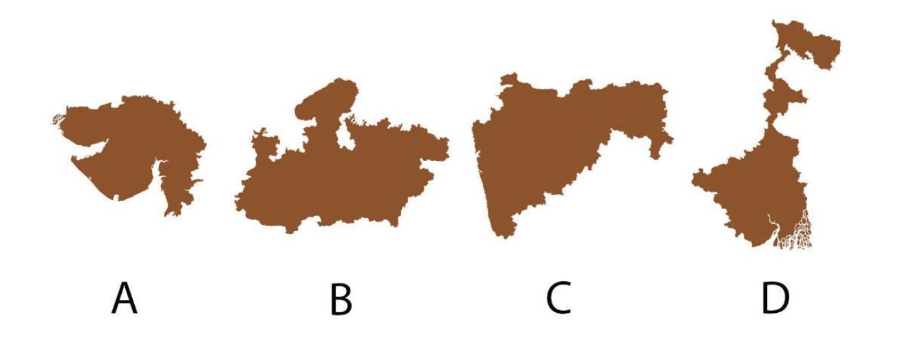 The options show maps of some states of India. In only one of the options, the map has been scaled (either up or down). Which is that option?