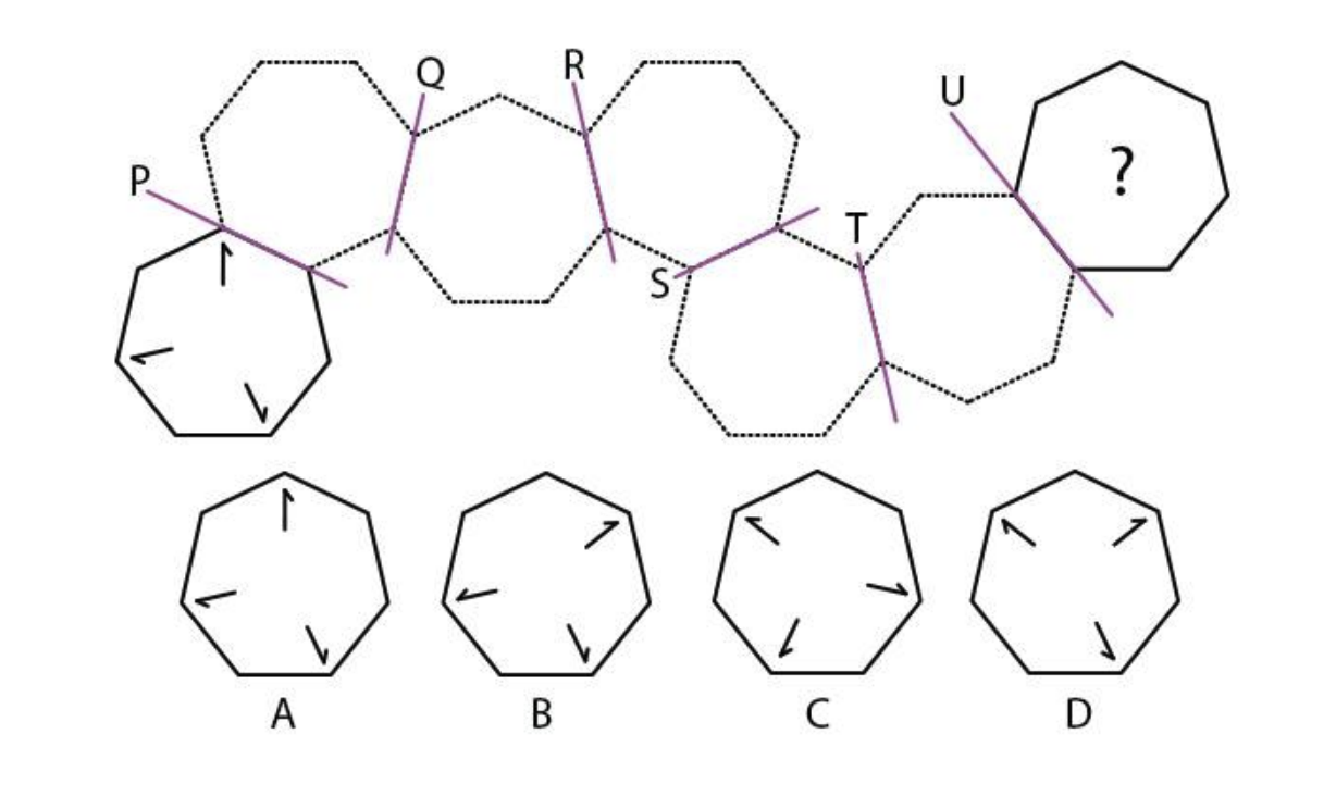The figure shown below is mirrored along the axes P, Q, R, S, T and U. What would be the resultant figure?