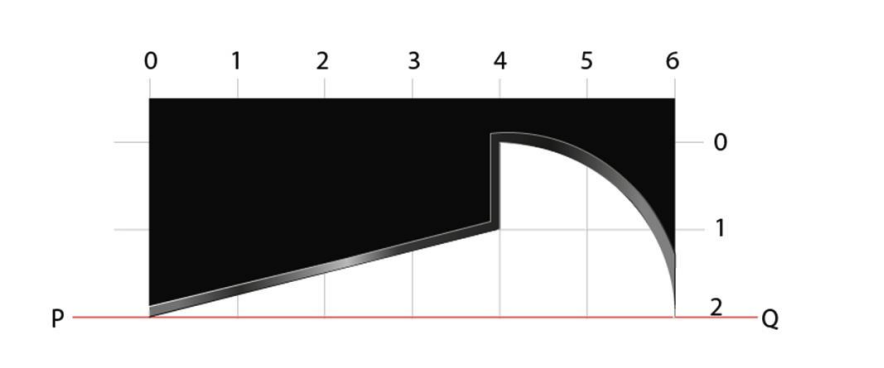 The image shows the profile of the blade which is designed to turn a wooden block, rotating about the axis PQ. Calculate the volume of the turned wooden block between P and Q. Consider the value of π to be 22/7.