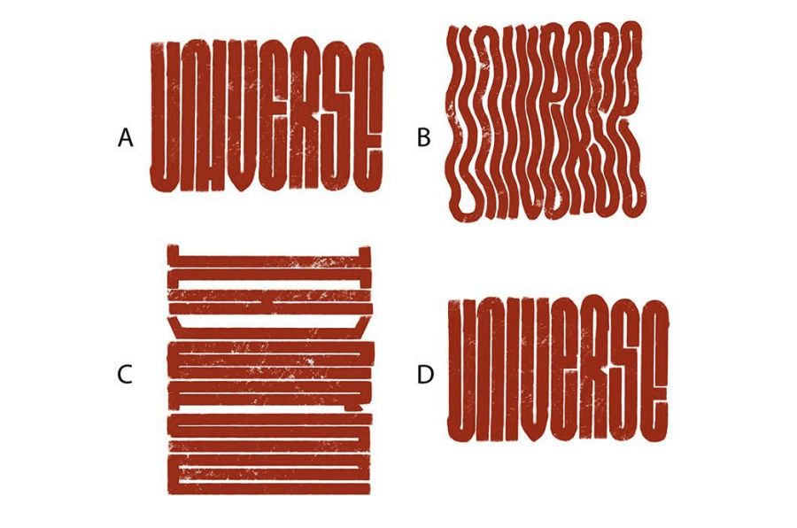 The options show four ways of attempting to write the word "universe" in a mix of lower-case and upper-case letters. Which of the option(s) is/are correctly read as "universe"?
