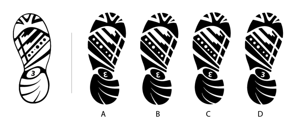The white part in the shoe sole shown left represents the embossed / raised area. Find out the right footprint of the shoe from the given options.