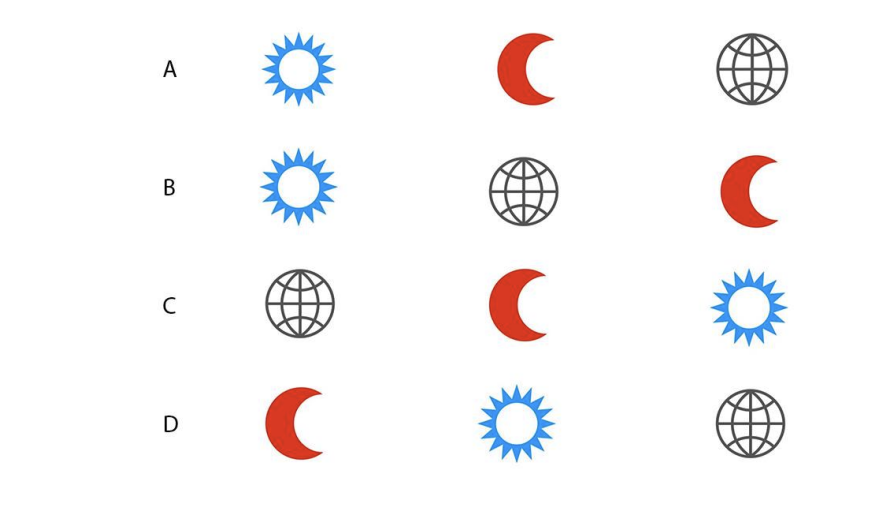 Which combination shows lunar eclipse?