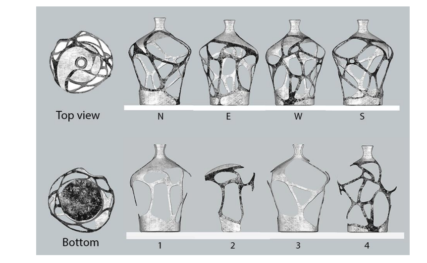 Refer to all the sides of a vase shown below. Select the correct order of sectional faces.