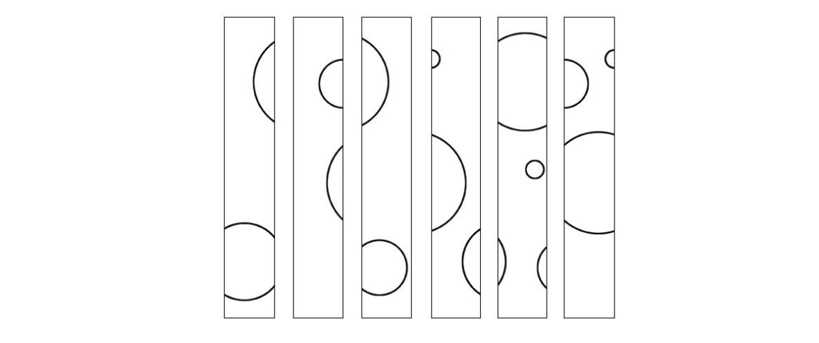 What is the maximum number of complete circles that will be seen, if the strips given below are re-arranged without rotating?