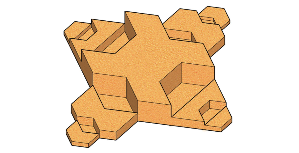 A perspective view of a solid is shown below. The solid is symmetrical, and hidden surfaces such as the base are flat. What is the total number of surfaces in the solid?
