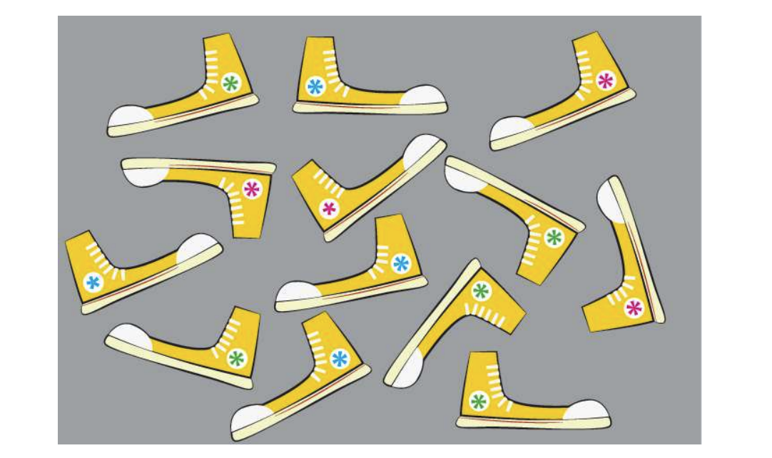 How many matching pairs of shoes (both left and right shoe) are present in the image below?