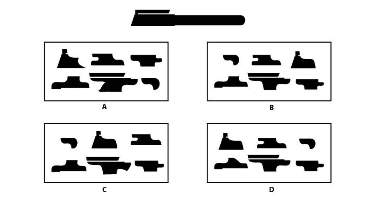 Which collection when arranged correctly will result in the silhouette of the pen shown below?