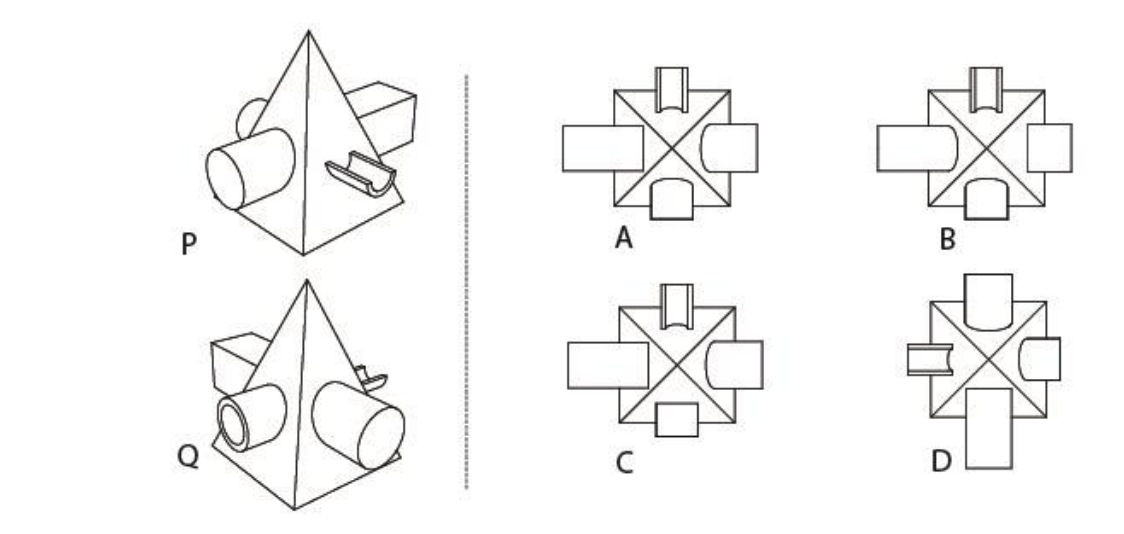 P and Q show two different views of the same solid object. Which of the options represent(s) the top view of the solid object?